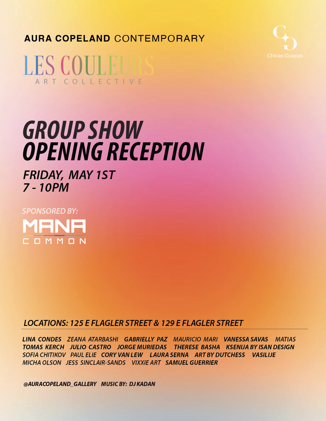 Group Show Opening ReceptionFriday May 1st, 7 - 10PM125 East Flagler Street & 129 E Flagler Street AURA COPELAND CONTEMPORARYLES COULEURS ART COLLECTIVE RSVP FOR MAY 1ST BY CLICKING HERE: