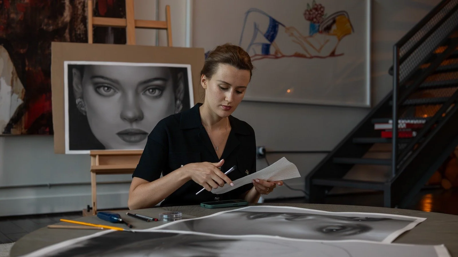 From Uzbekistan, she unveils mesmerizing optical illusions and precision in her charcoal portraits, capturing near-photographic perfection. Explore her meticulous compositions where patience meets artistic passion.